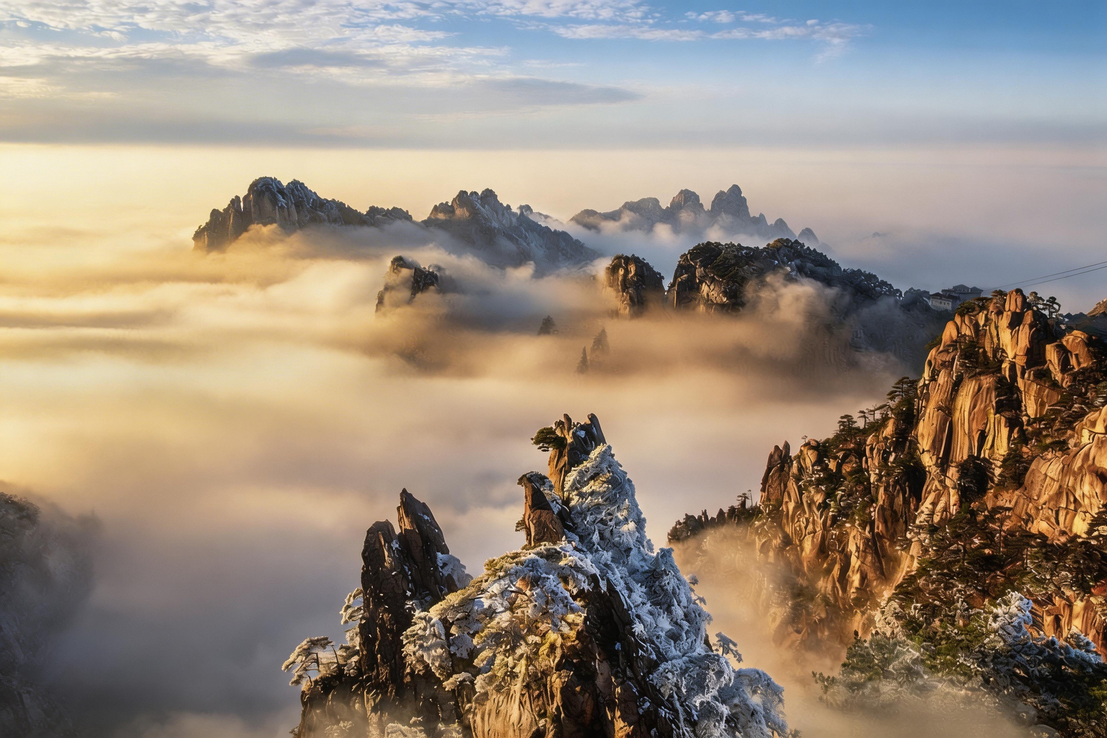 Huangshan Scenic Area, famous for its “Four Wonders” (strange pines, grotesque rocks, sea of clouds, hot springs), was listed as a World Cultural and Natural Heritage in 1990.