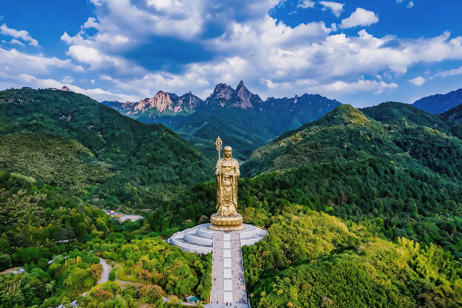 Chizhou City: Embark on a pious journey, copy scriptures and feed pigeons under the Jiuhua Mountain Ksitigarbha Buddha statue, and hike to admire the emerald waterfall in Guniujiang.