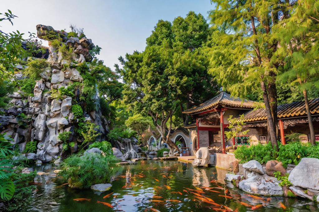 Beneath the red walls, feel the lingering warmth of history—Zhuhai Yuanming New Garden.