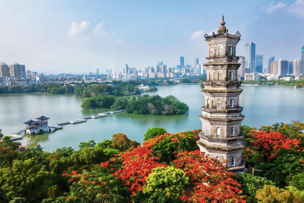 Huizhou West Lake, with its five lakes and six bridges, forms a Jiangnan-style ink painting. You can boat to admire water lilies or climb Sizhou Pagoda to overlook the city’s reflection and enjoy a slow lifestyle.