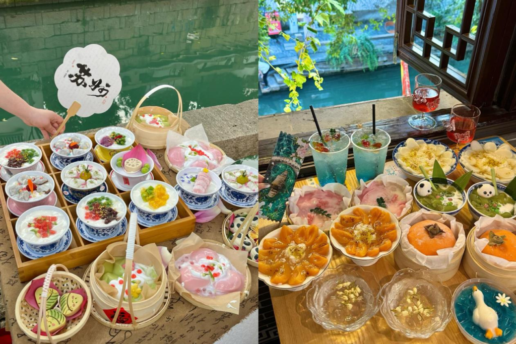 Small bridges, flowing water, black-awning boats, and white walls with gray tiles—taste an exquisite Jiangnan dessert.